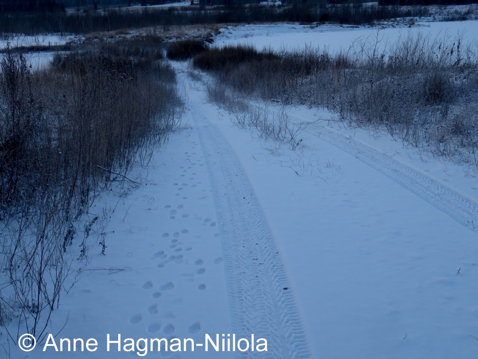 Ollaan oltu pilkillä, ja jäätä on ollut vain 15cm. Saaliiksi on tullut ahvenia. Korppi on lentänyt ylitse. Pupun- ja ketunjälkiä on ollut paljon.