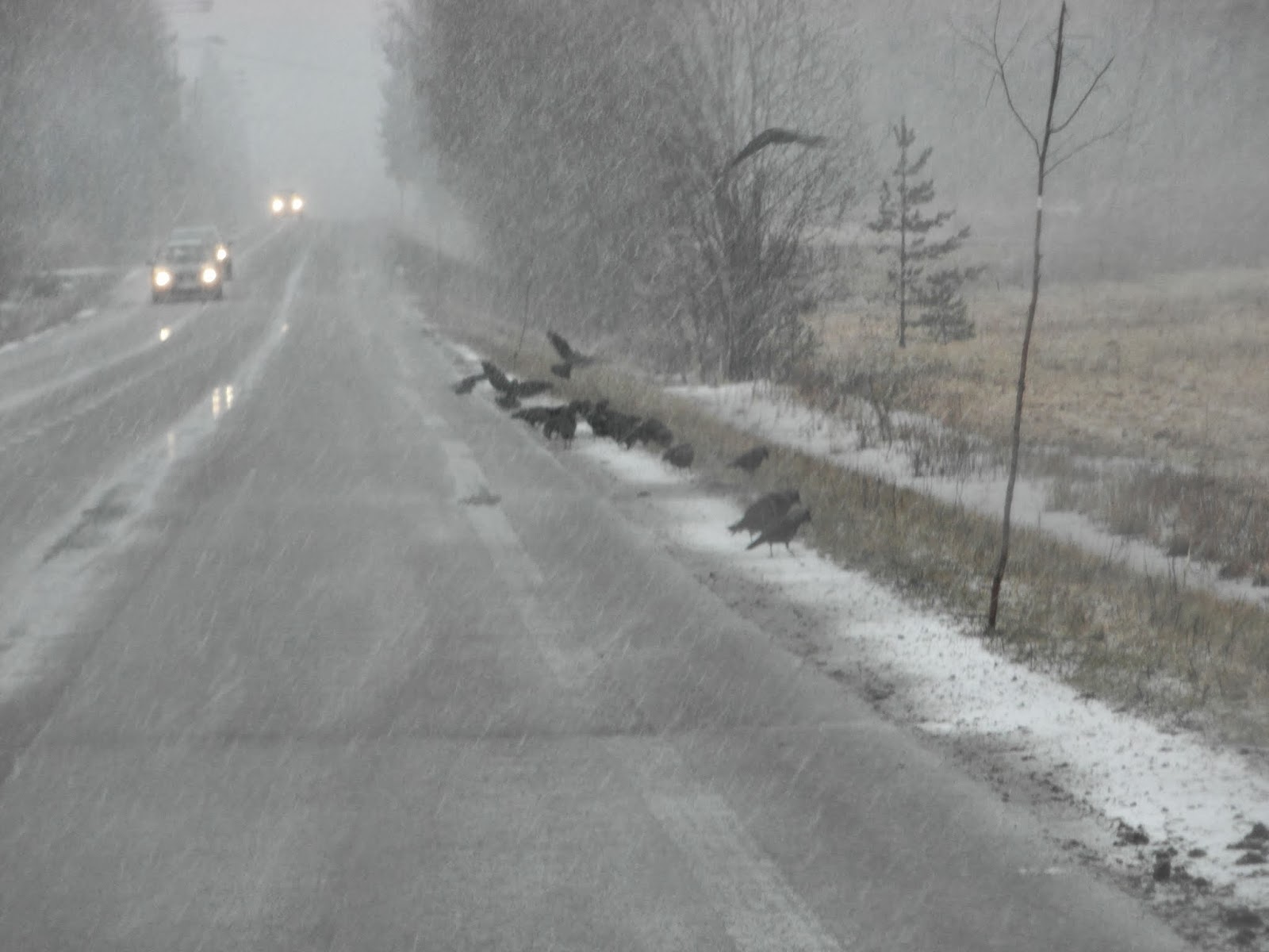 Koko yön oli kova tuuli. Aamulla herättiin ropinaan, kun räntä mäjähteli ikkunaan. Aamupäivän aikana satoi sen verran paljon räntää, että tielle kertyi sohjoa.