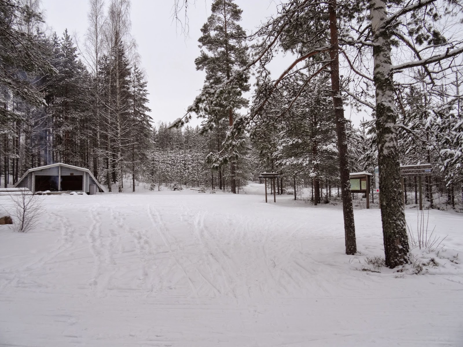 Lähdettiin helpompiin maastoihin hiihtelemään ja katselemaan jälkiä.