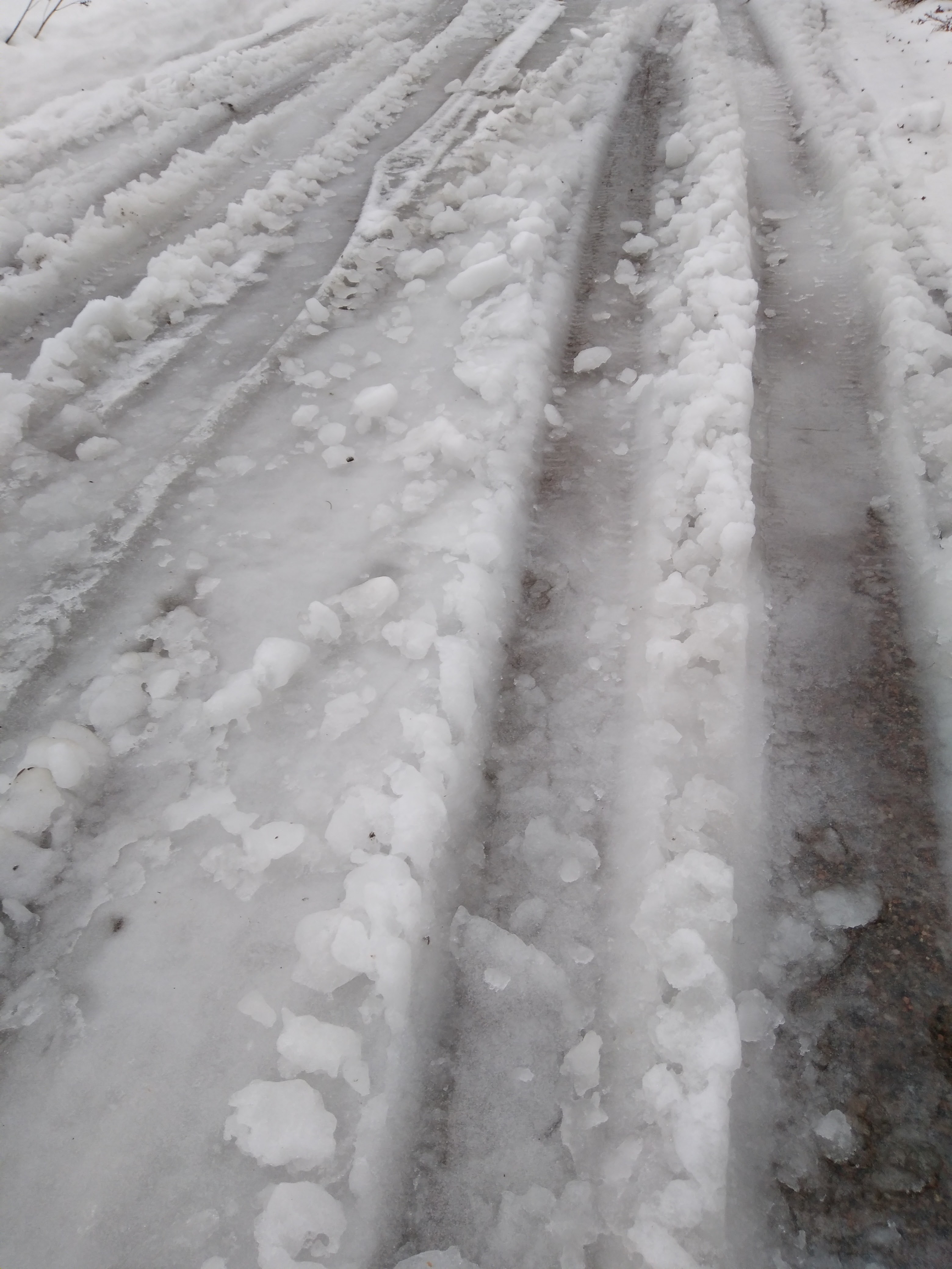 Tänään on satanut vettä. + 3°C lämmintä. Lumisadetta odotellaan. Pökyn päällä oli vielä muutama päivä sitten iso lumikasa. Nyt jäljellä on vain pieni määrä lunta.